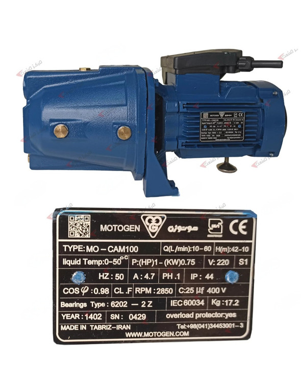 پمپ آب یک اسب جتی موتوژن تبریز (با ۲ سال گارانتی تعویض) مدل 01/CAM100 پروانه استیل