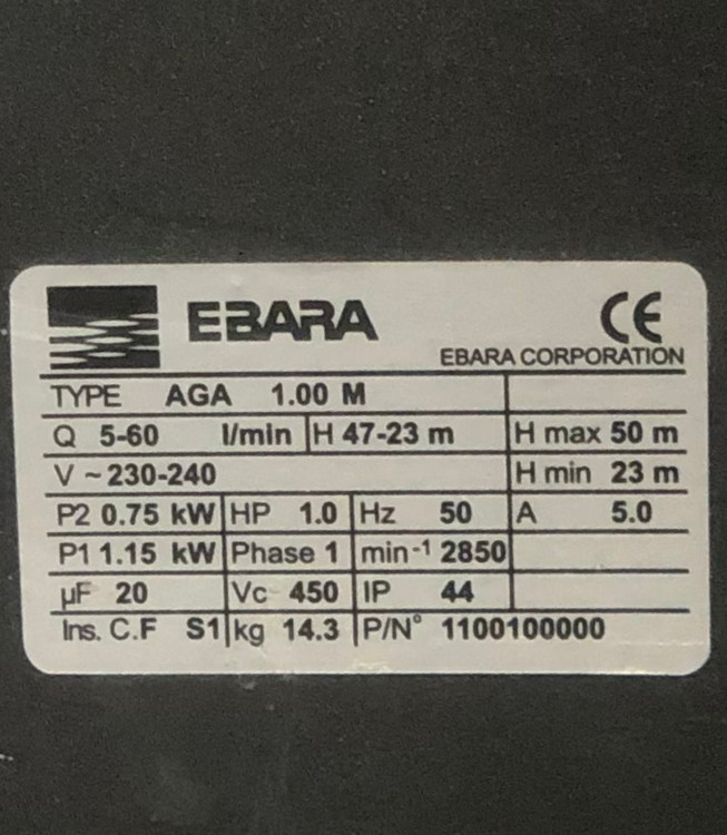 پمپ یک اسب جتی ابارا مدل (AGA1.00M) کارکرده (استوک)